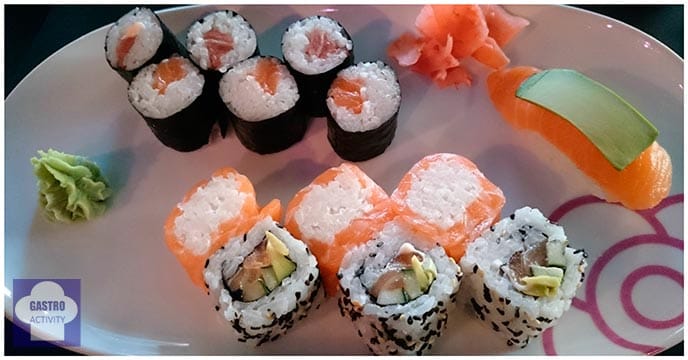 El otro plato estrella de Miss Sushi es Miss Premium: con makis de atún, makis de salmón, California salmón, rollitos queso fresco y sushi de salmón y aguacate. En total 13 piezas. Muy ricos y jugosos. Y con una cantidad de piezas importante.